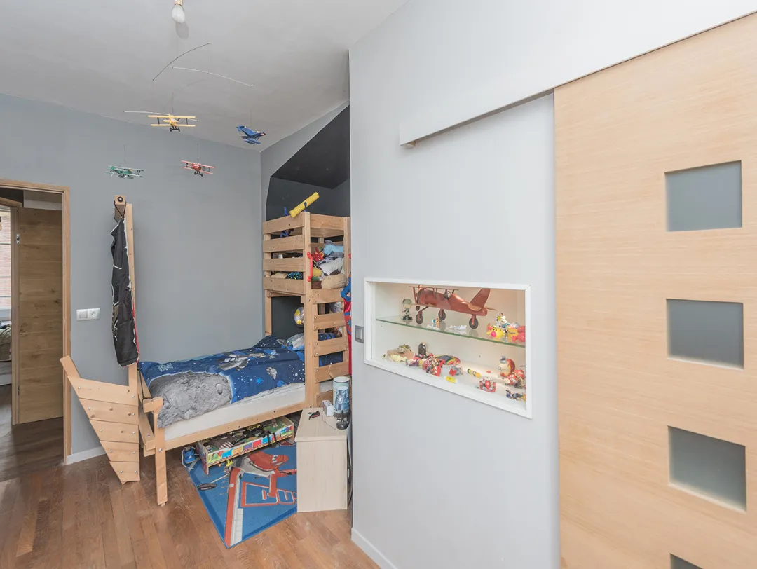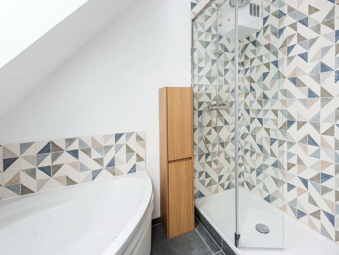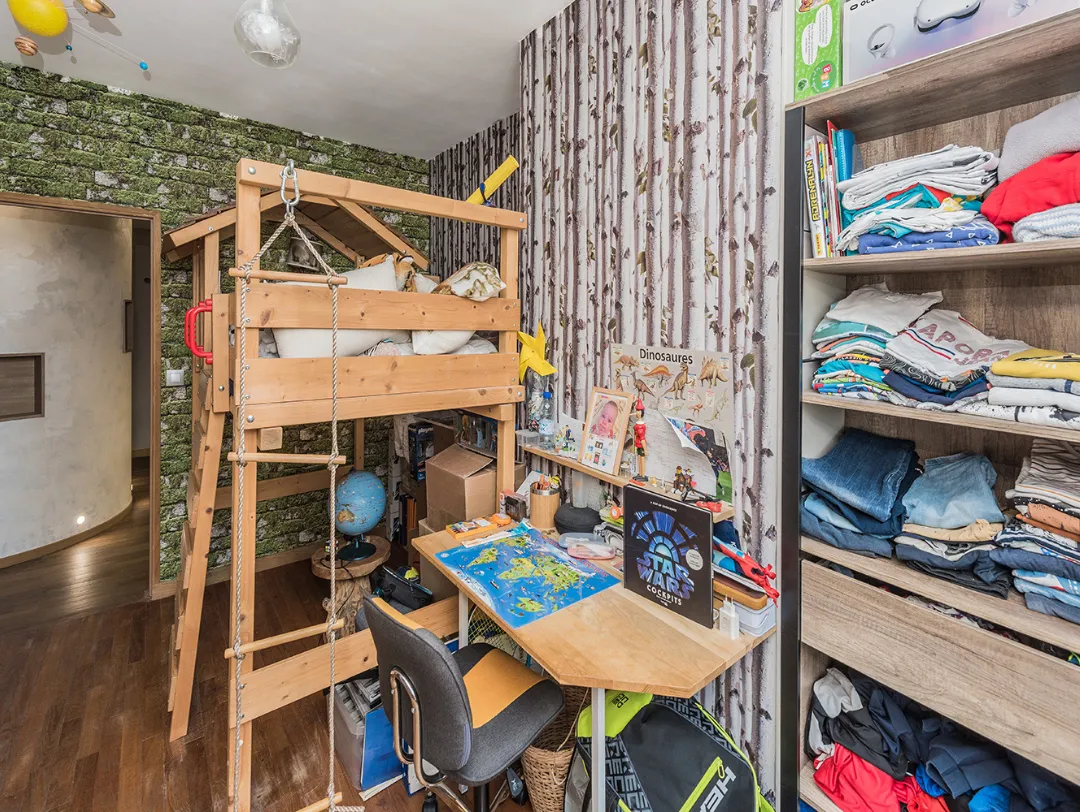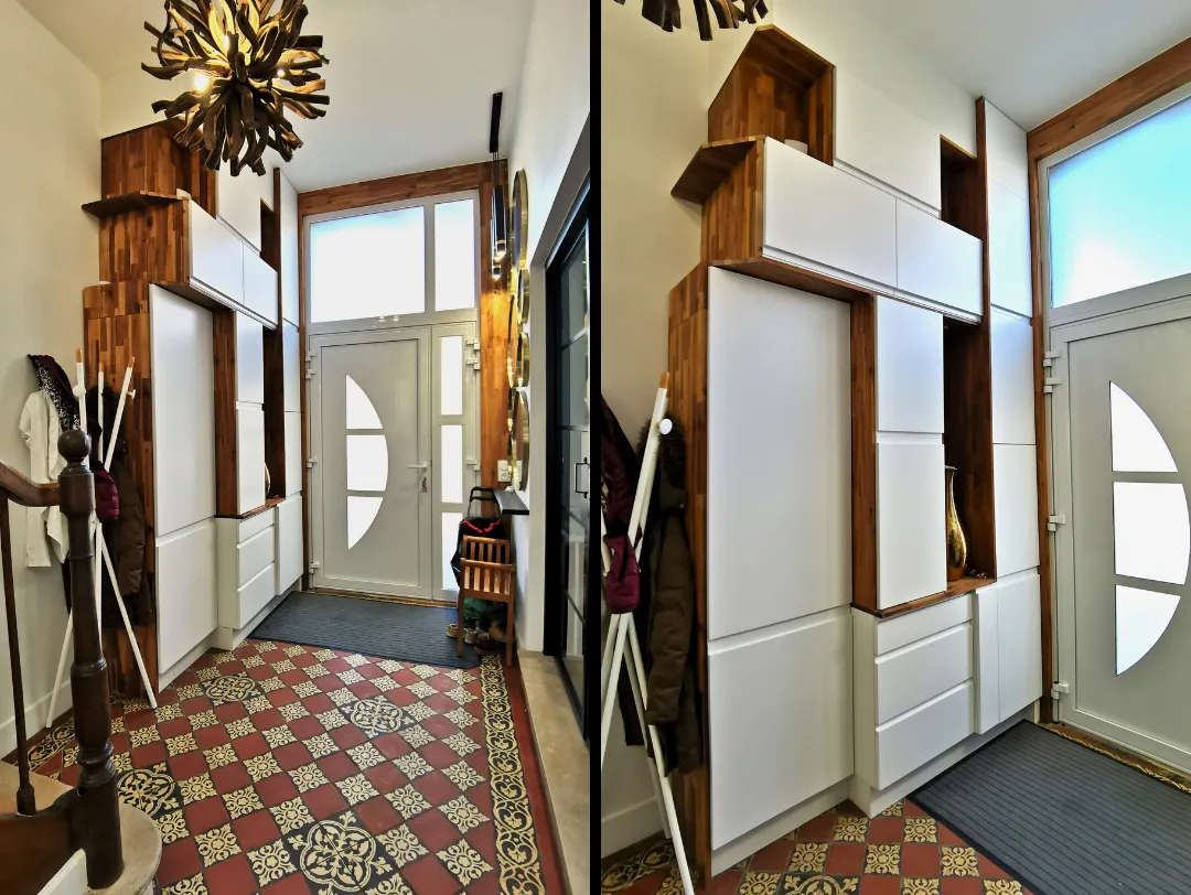 Objectifs : L’appartement sombre et possédant une zone non habitable en grenier a été entièrement réorganisé par l’aménagement de l’espace grenier servant de stockage attenant en 2 grandes chambres avec salle d’eau et dressing privatifs ainsi qu’une buanderie. L’appartement se situant au dernier étage de l’immeuble, une partie des combles non aménagés et non accessibles de l’immeuble a également été rattachée à l’appartement par la création d’une mezzanine et d’un double volume sur salle à manger – après accord de la copropriété et demande auprès des services d’urbanisme de la ville.