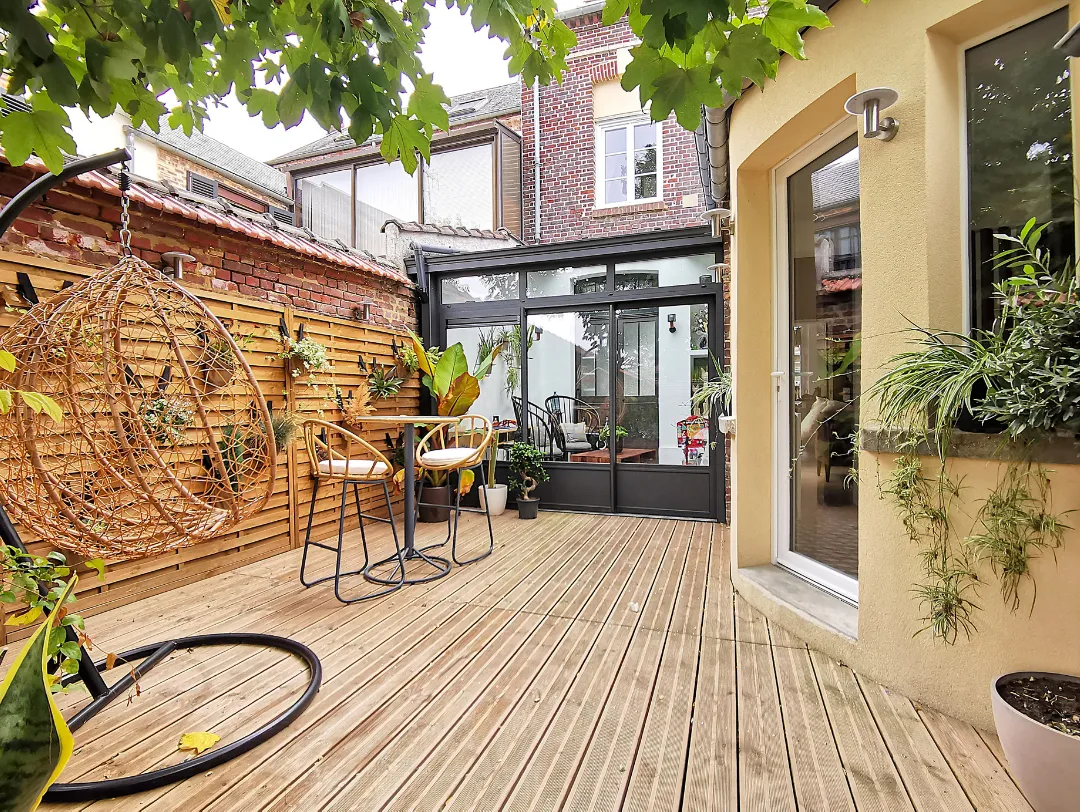 Travaux : Démolition intérieure, fenêtres et verrière de toit, isolation, cloison, électricité, plomberie, chauffage, carrelage, parquet, enduit et peinture intérieurs, cuisine et buanderie en ameublement, aménagement des salles de bain