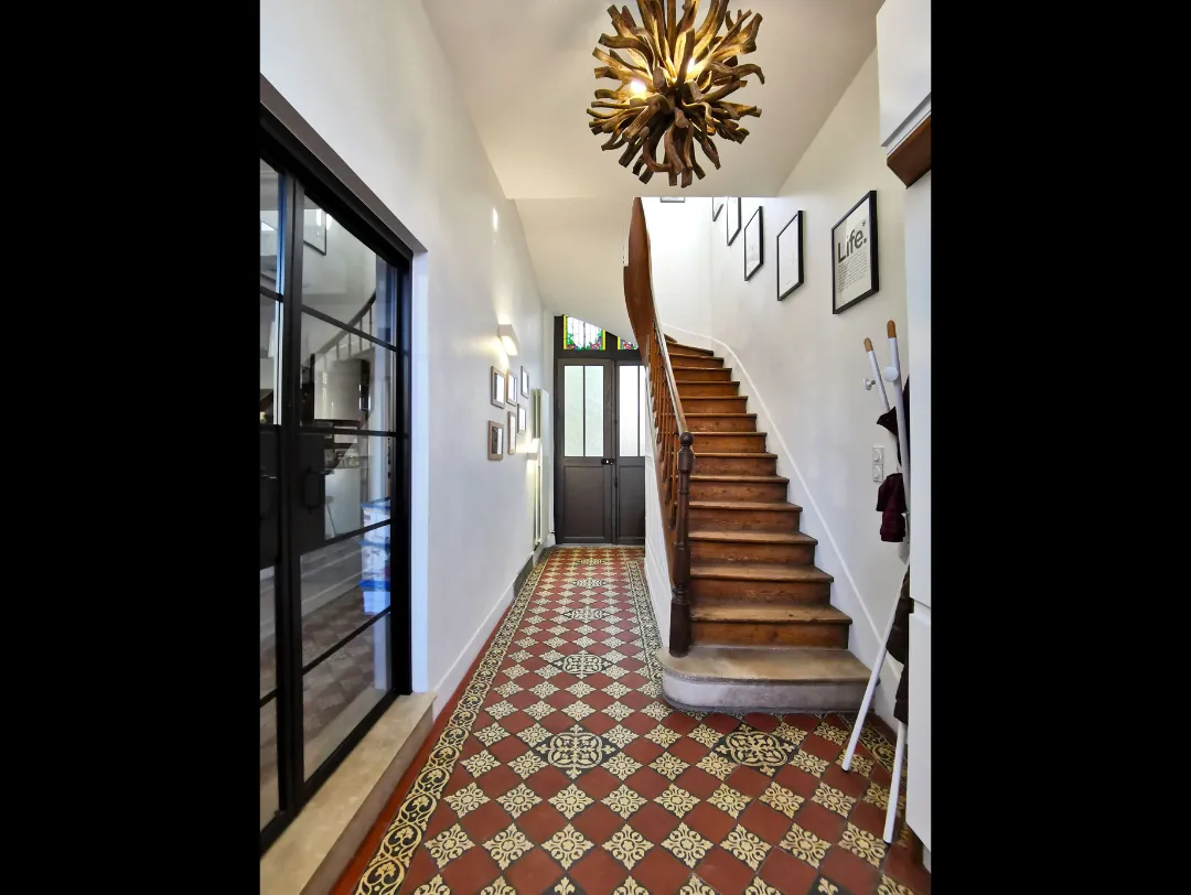 Objectifs : Conserver les atouts de cette demeure – parquet massif, tomettes, grande hauteur sous plafond, moulures, etc… – et y associer un aménagement et une décoration contemporains.