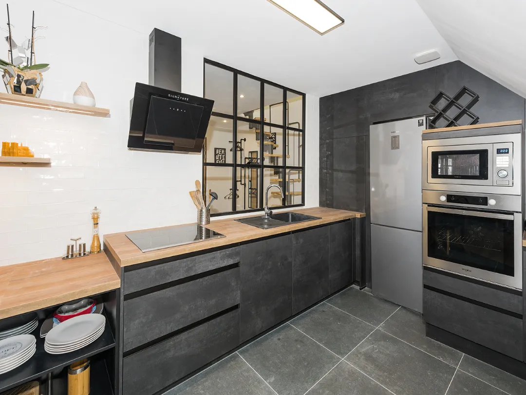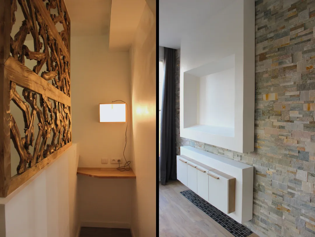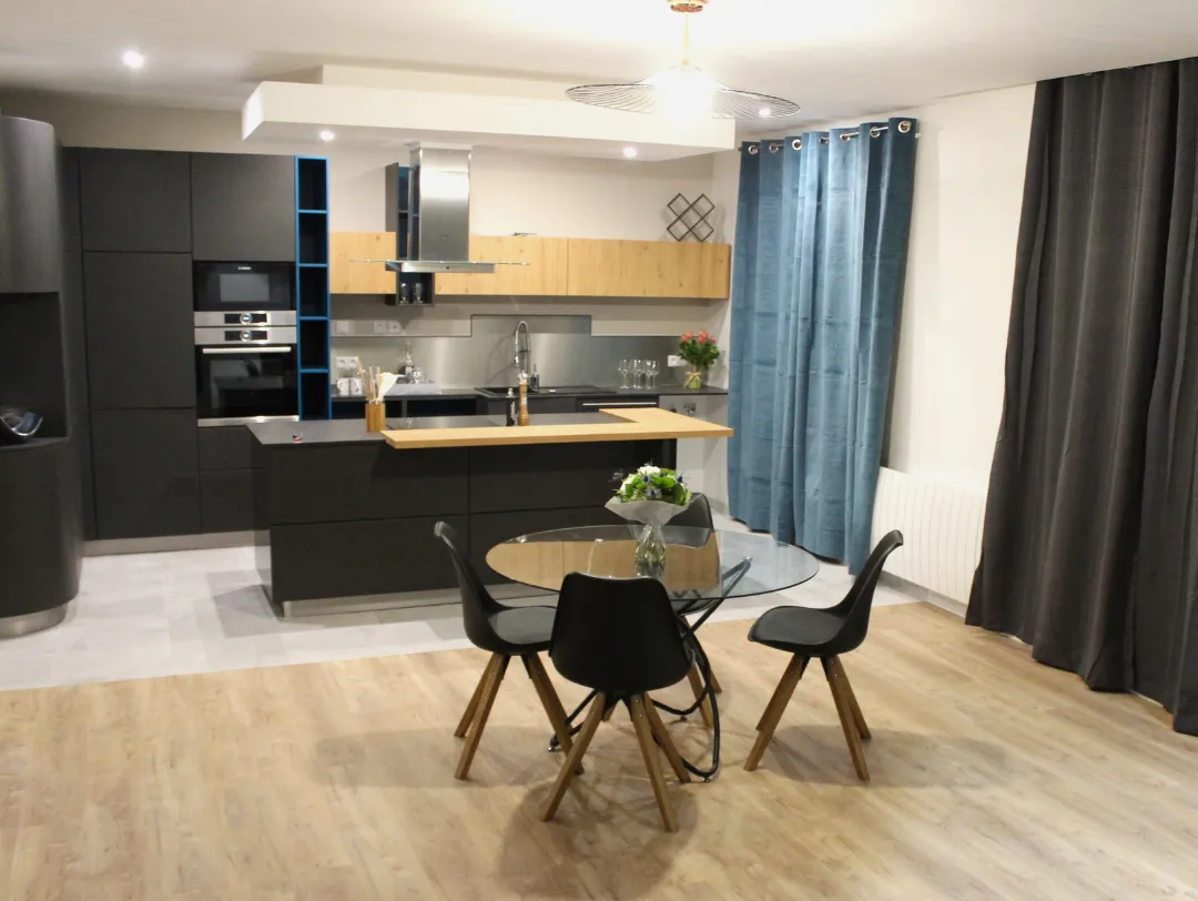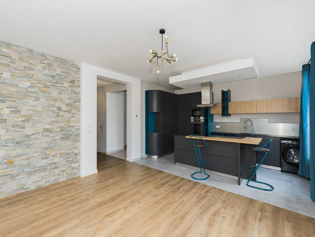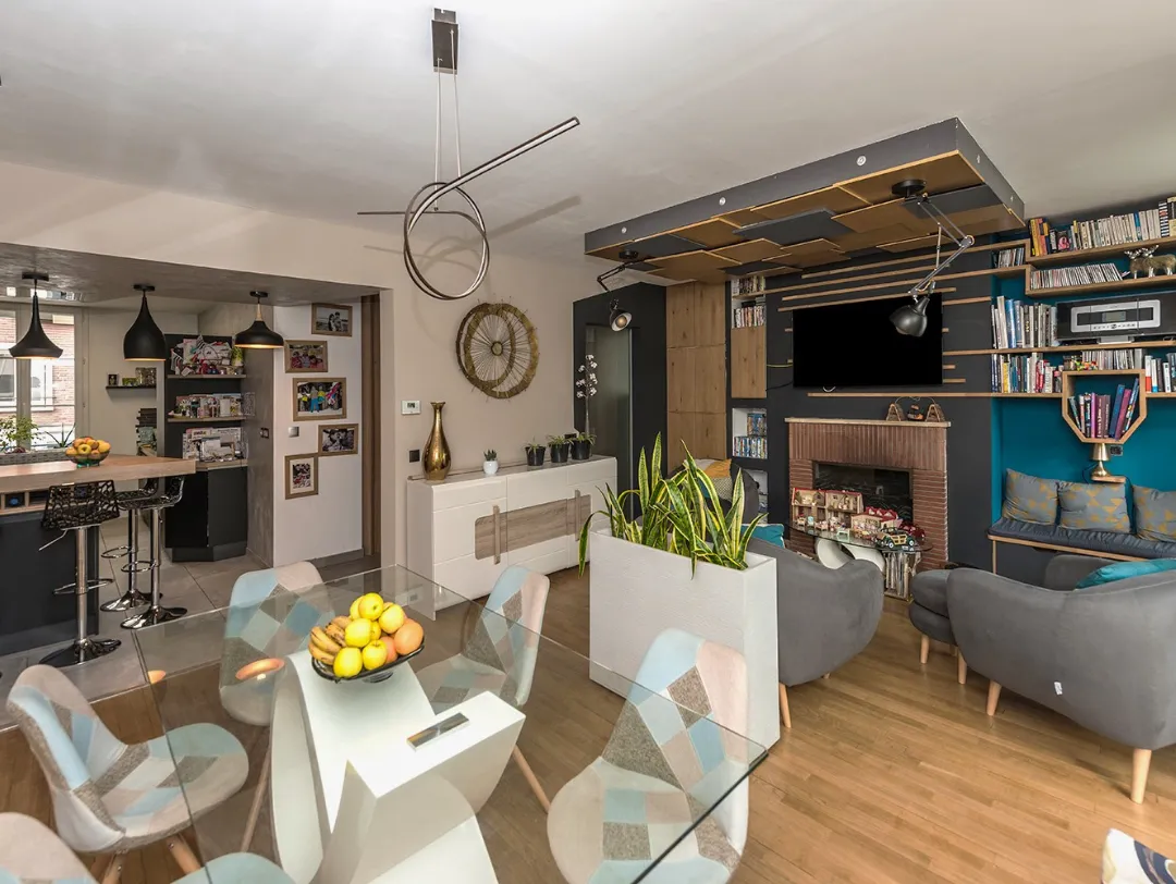 Objectifs : Cet ancien local professionnel de plus de 120 m² a été pensé, organisé et aménagé en appartement spacieux et fonctionnel avec une décoration contemporaine. La transformation a mis l’accent sur la luminosité et l’espace, avec de grandes baies vitrées permettant à la lumière naturelle d’inonder chaque pièce. Le design intérieur se veut moderne, épuré et confortable, avec des matériaux de qualité.
