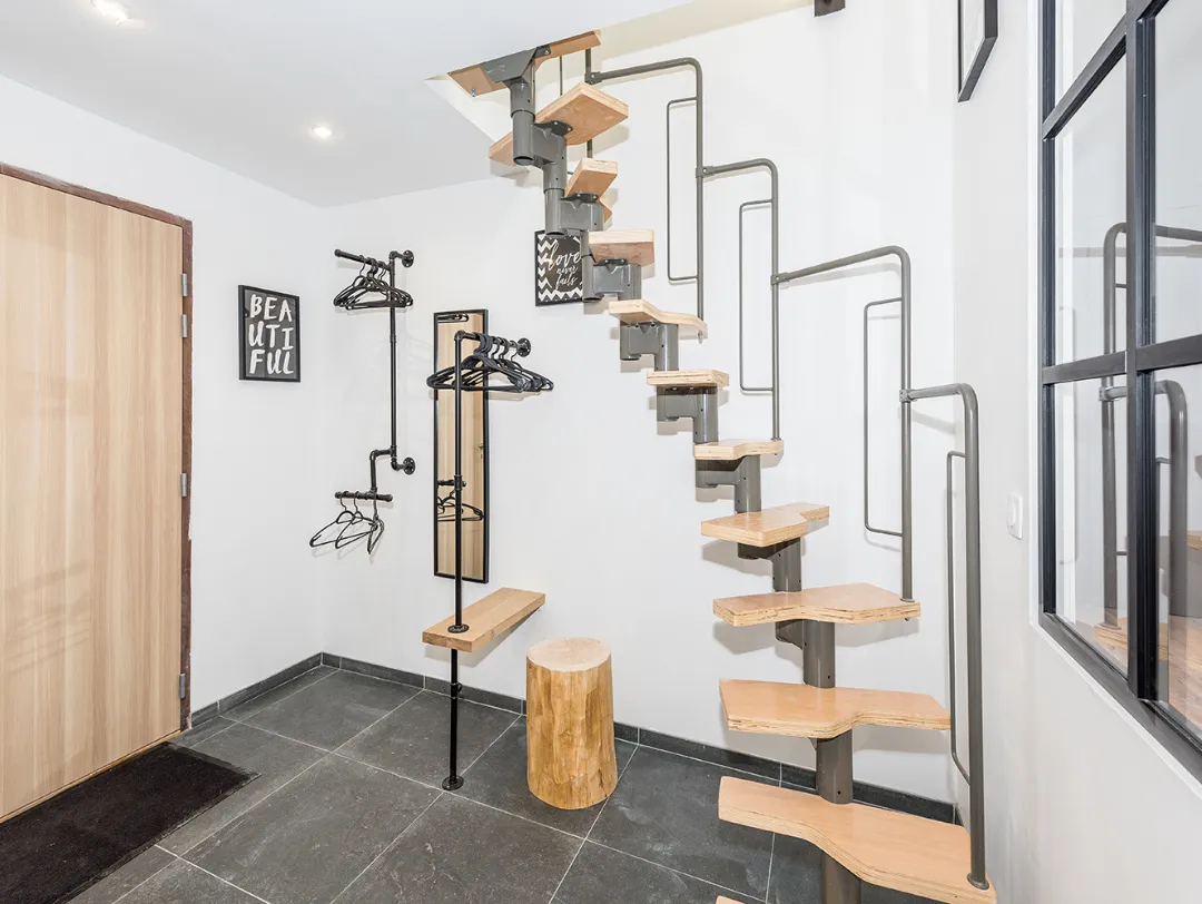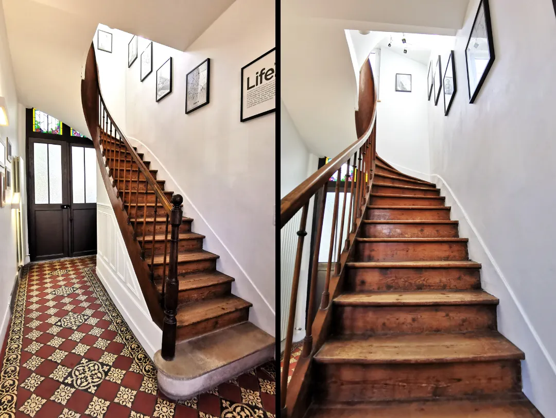 L’ancien escalier principal de la maison a été rénové et en partie remplacé afin de pouvoir distribuer indépendamment le 1er et le 2ème étage de la maison.