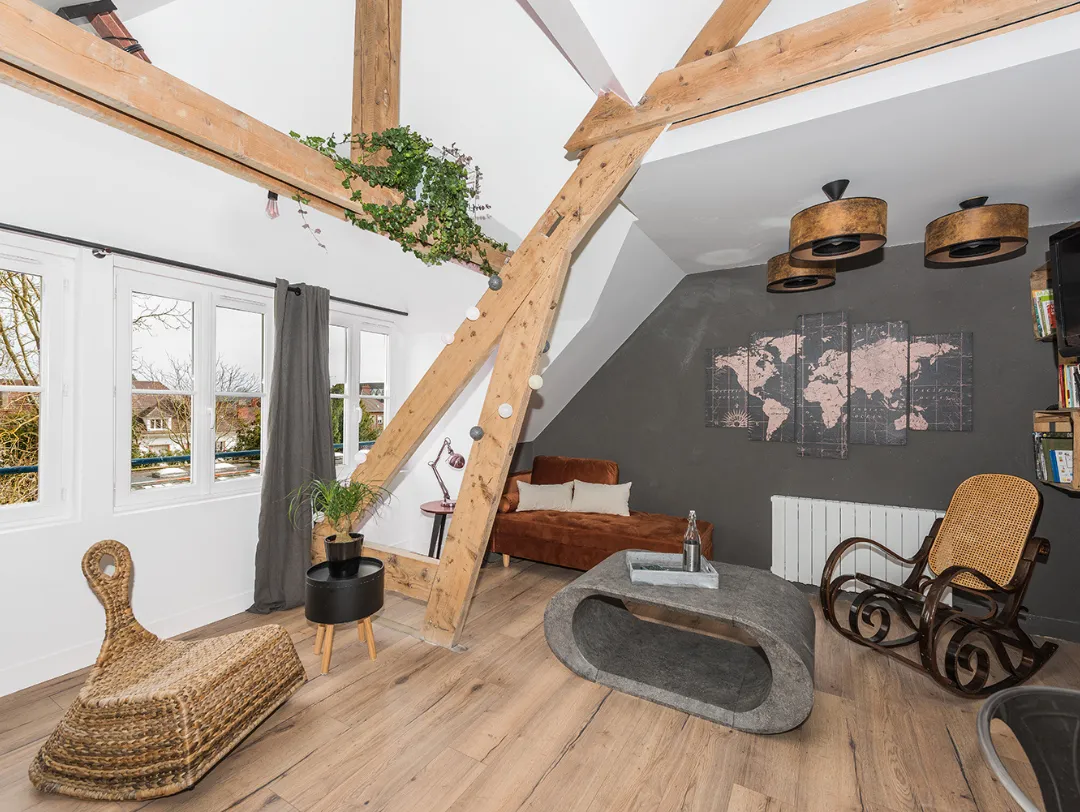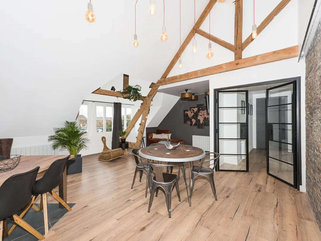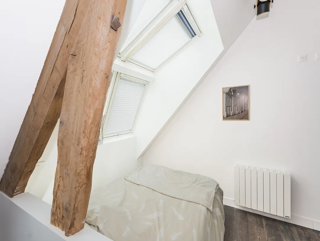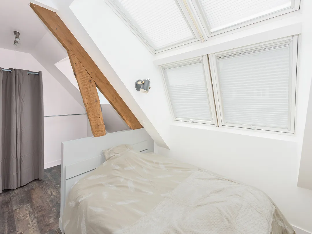Le deuxième et dernier niveau a été agrémenté de deux nouvelles lucarnes afin de pouvoir faire entrer la lumière et créer à ce même niveau un appartement à part entière.
