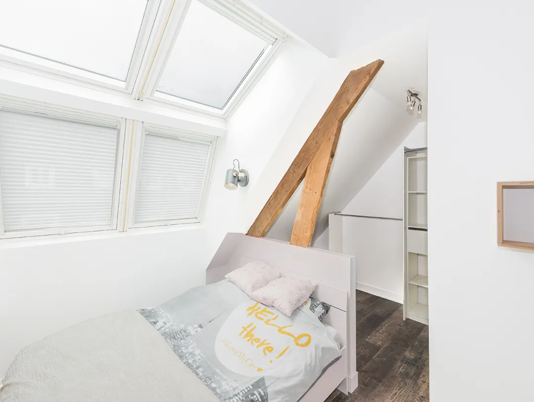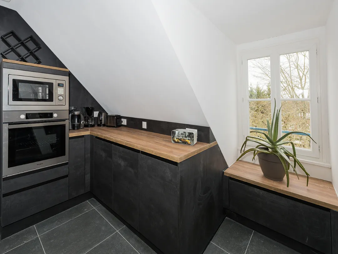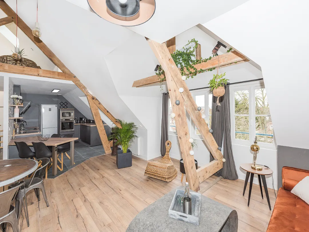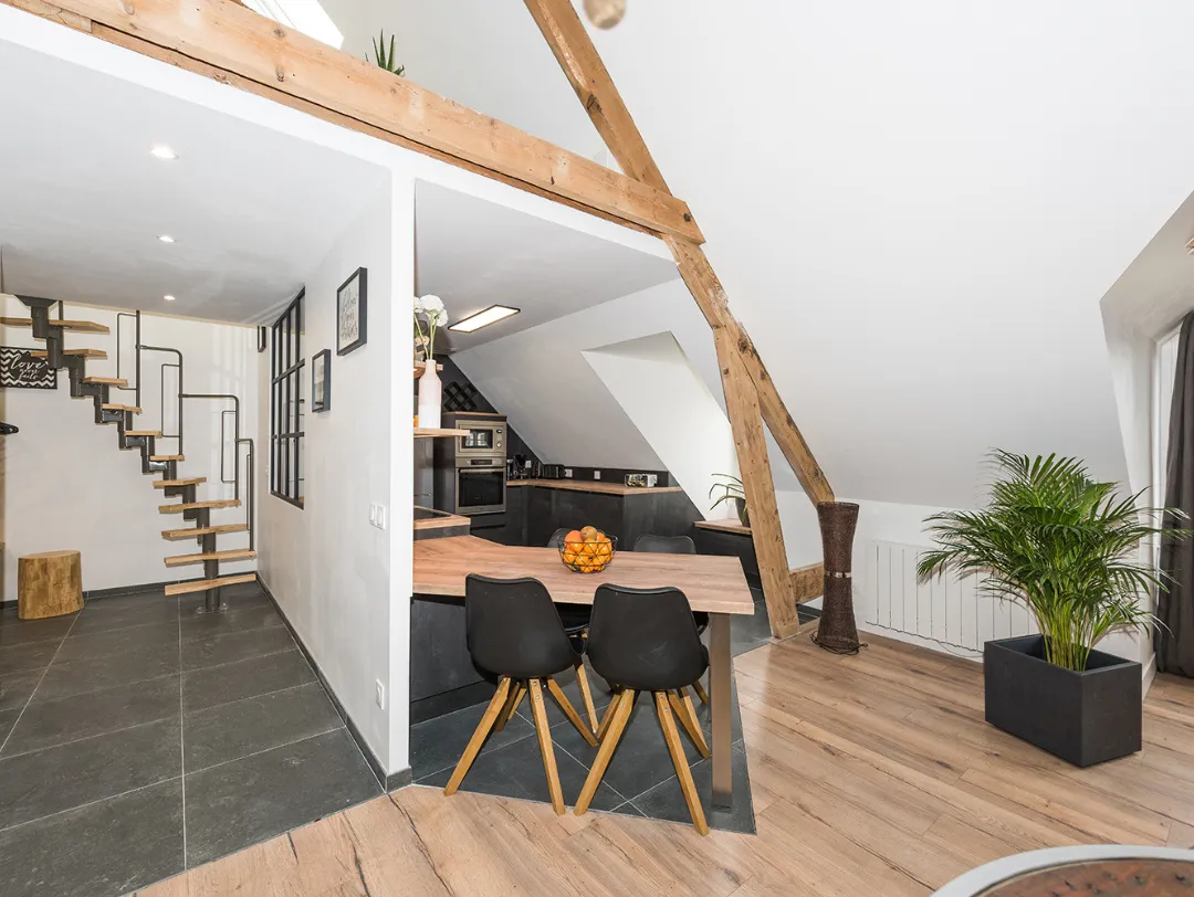 Le deuxième et dernier niveau a été agrémenté de deux nouvelles lucarnes afin de pouvoir faire entrer la lumière et créer à ce même niveau un appartement à part entière.