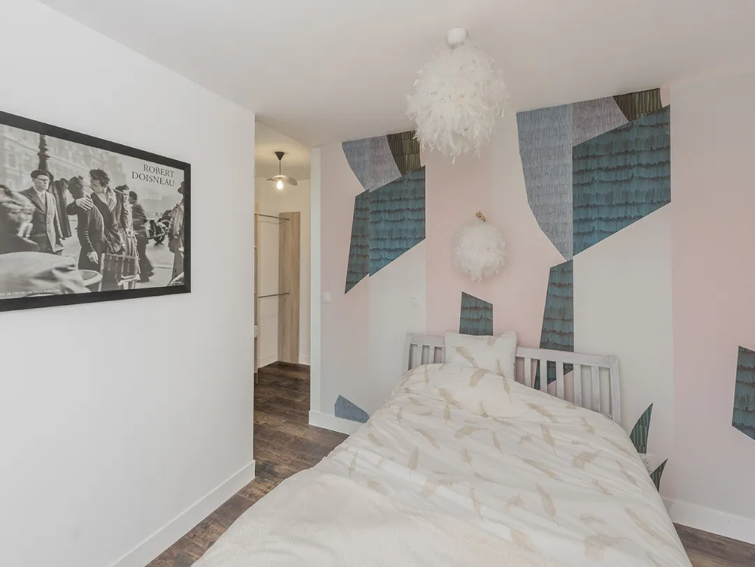 Enfin les 3 petites chambres existantes ont été réorganisées afin de créer un véritable espace dédié au salon rattaché à l’espace salle à manger ainsi qu’une chambre plus grande et fonctionnelle.