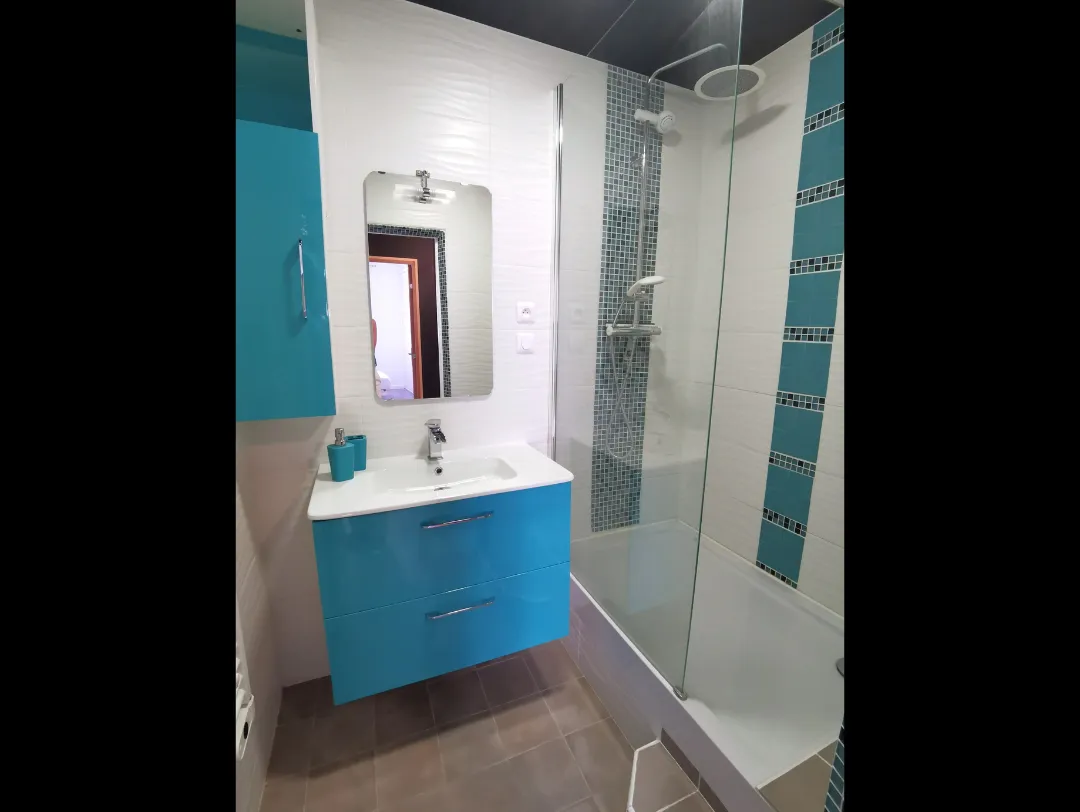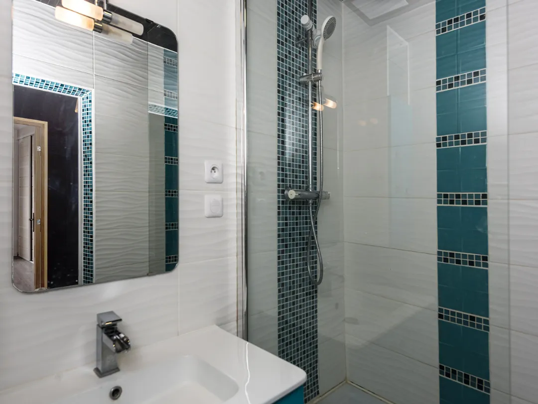 L’entrée, unique en son genre, adopte une forme hexagonale élégante, équipée de rangements pratiques en périphérie pour optimiser l’organisation. L’appartement comprend deux chambres de taille généreuses avec salle de bain commune ainsi qu’une suite parentale élégante dotée d’un vaste dressing sur mesure et d’une salle d’eau privative attenante à la chambre. La configuration ouverte des pièces de vie favorise un style de vie confortable et pratique, avec un espace de vie centralisé, une cuisine ouverte équipée et un salon lumineux. L’aménagement optimise chaque mètre carré pour offrir un cadre de vie esthétique, fonctionnel et harmonieux.